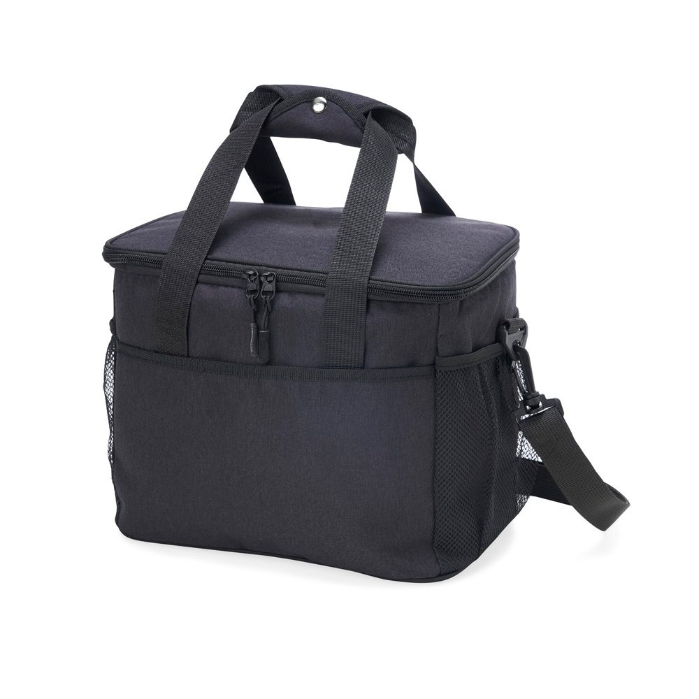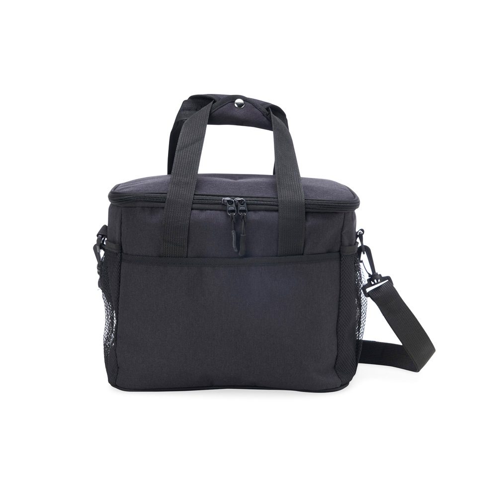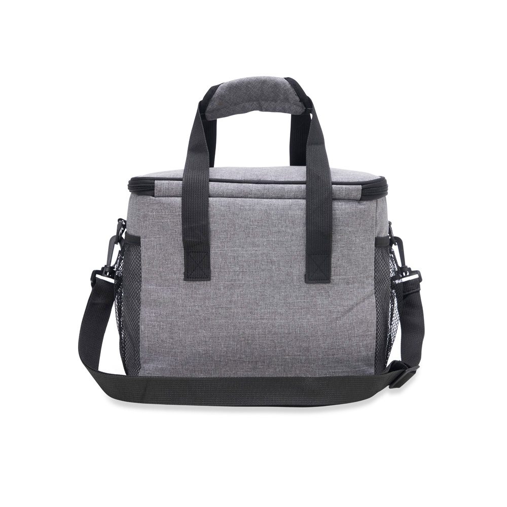 Bolsa térmica 14 Litros confeccionada em nylon, possui parte interna soldada (não vaza), bolso frontal exterior; bolso traseiro exterior; bolsos laterais telados, alça de mão com suporte para junção das alças, e alça transversal ajustável e removível.