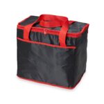 Bolsa térmica de poliéster com capacidade de 36 litros, contém área interna com revestimento térmico aluminizado, bolso frontal externo e alças de mãos para transporte.