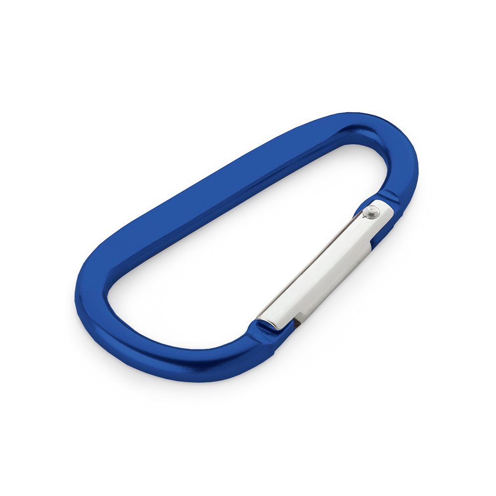Mosquetão em alumínio com área plana para gravação. 32 x 57 x 5 mm