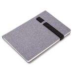 Caderno porta caneta e celular tecido sintético. Elástico colorido e caderno ciza, possui aproximadamente 80 páginas pardas pautadas.