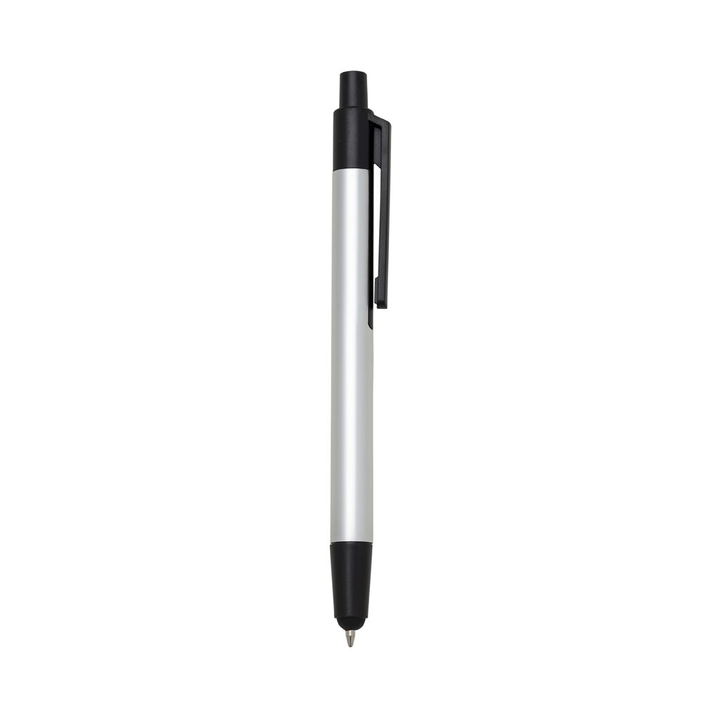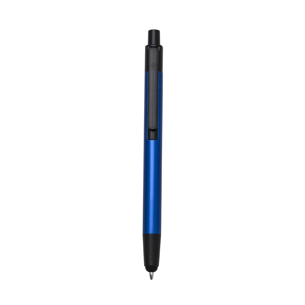 Caneta touch metal inteira colorida com detalhes preto. Clip plástico, possui touch e caneta esferográfica. Aciona por clique, esferográfica sai por dentro do touch. OBS.: PEDIDO APENAS MÚLTIPLO DE 50 PEÇAS!