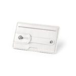 Porta cartões para celular em PU com bloqueio de RFID, com capacidade para dois cartões. O porta cartões tem fita ajustável em PU e autocolante no verso. 102 x 63 x 3 mm