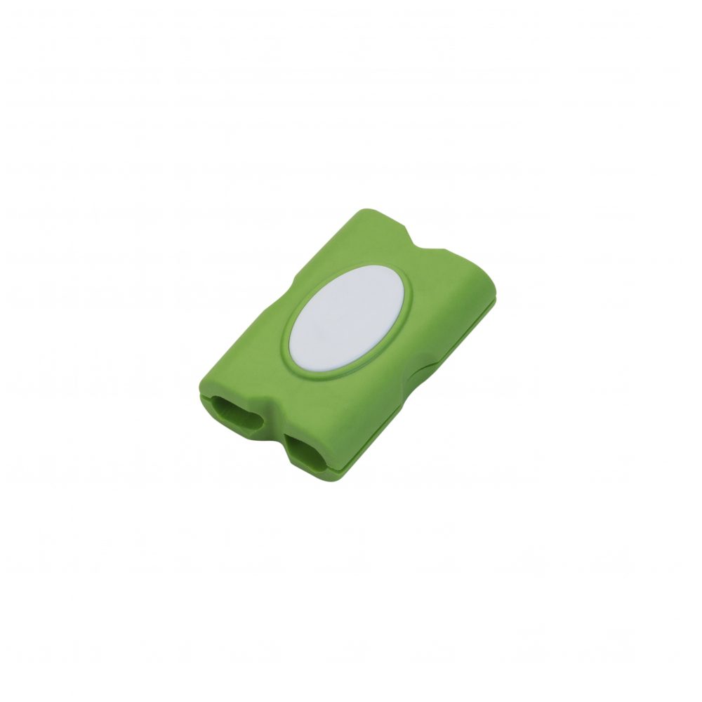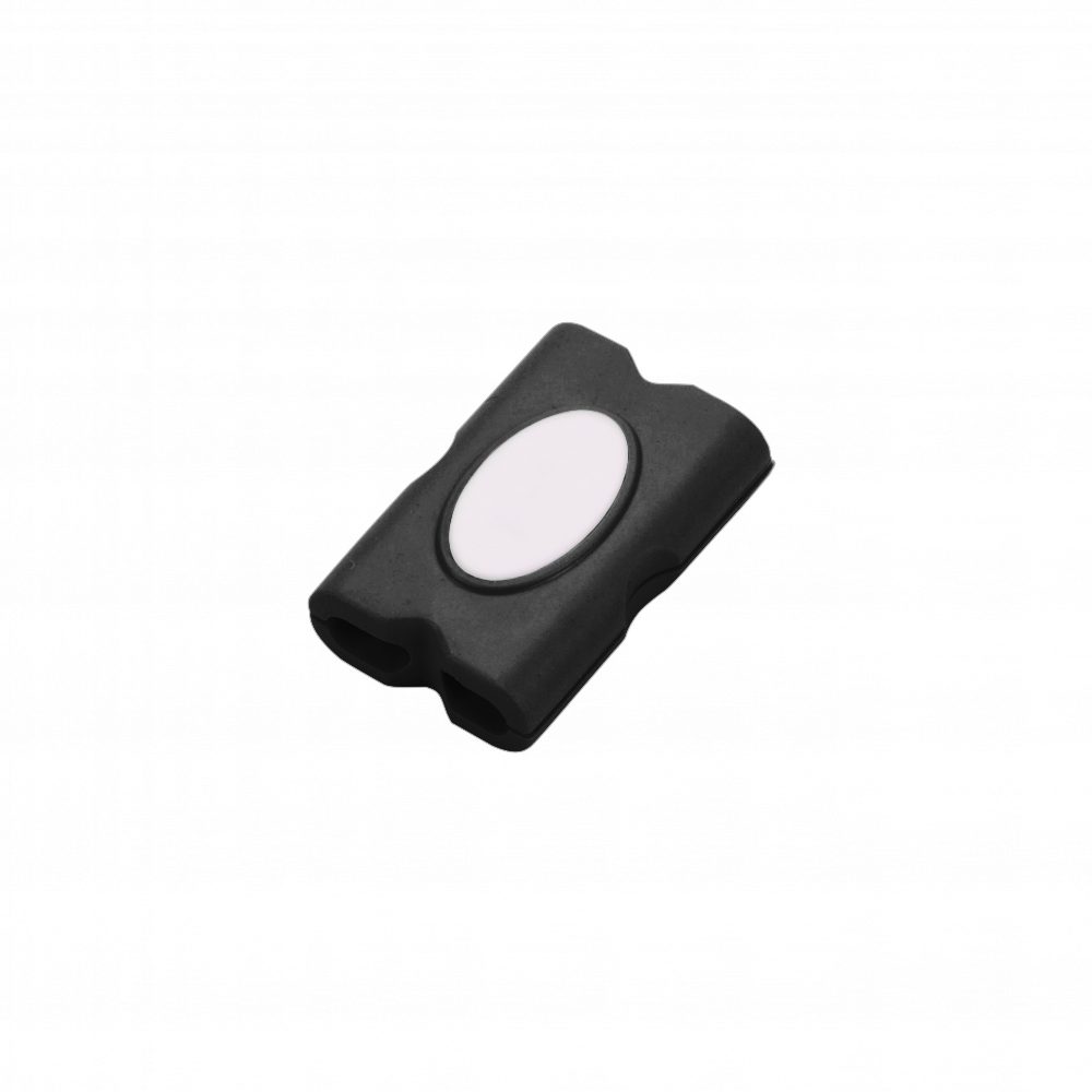 Organizador de cabos, contém “plaquinha” oval plástica removível para personalização.