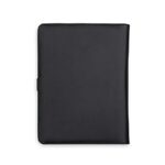 Pasta convenção com fecho imantado e plaquinha personalizável. Produzido em couro sintético, a pasta contém bolso lateral na contracapa e bolso com fechamento em zíper, além divisórias para cartões e/ou documentos com bolso lateral. Possui acesso para fichário de duas argolas e compartimento para bloco de folhas com aproximadamente 20 folhas brancas com pauta.