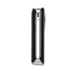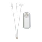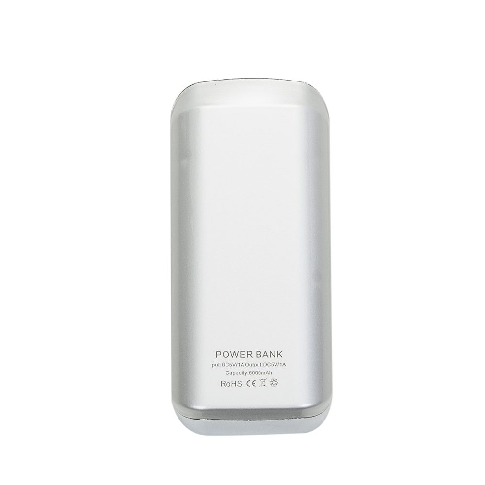 Carregador Power bank com lanterna e indicador led. Material plástico resistente; botão power frontal com 4 indicadores de energia em led azul; possui um contorno prata espelhado nas laterais; entrada 5V/0.5-1A; saída 5V/1A-2A; bateria de 1800mAh. Para acender a lanterna pressiona duas vezes o botão Power, ao pressionar pela terceira vez a lanterna entrará em modo emergência/piscará. Acompanha cabo USB.