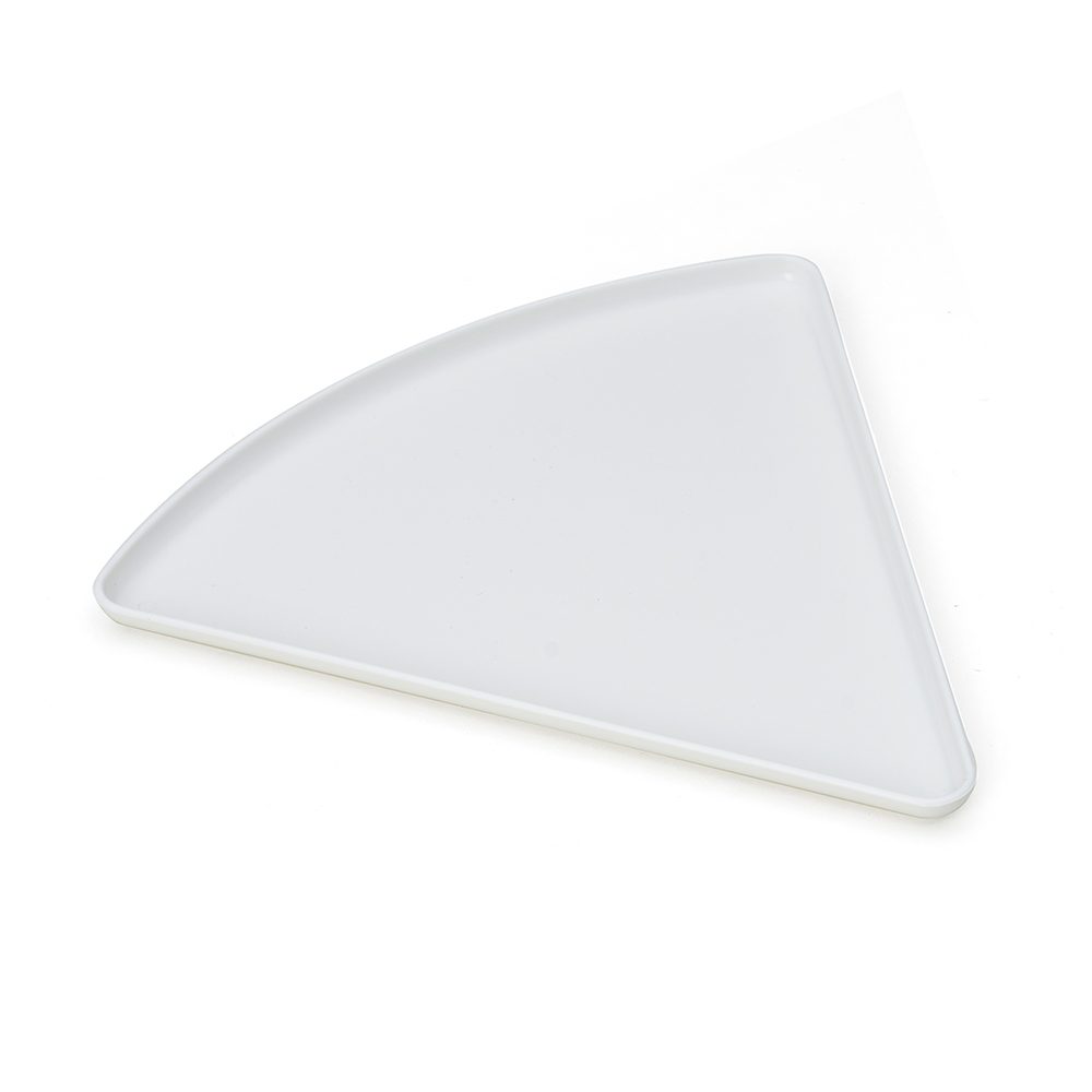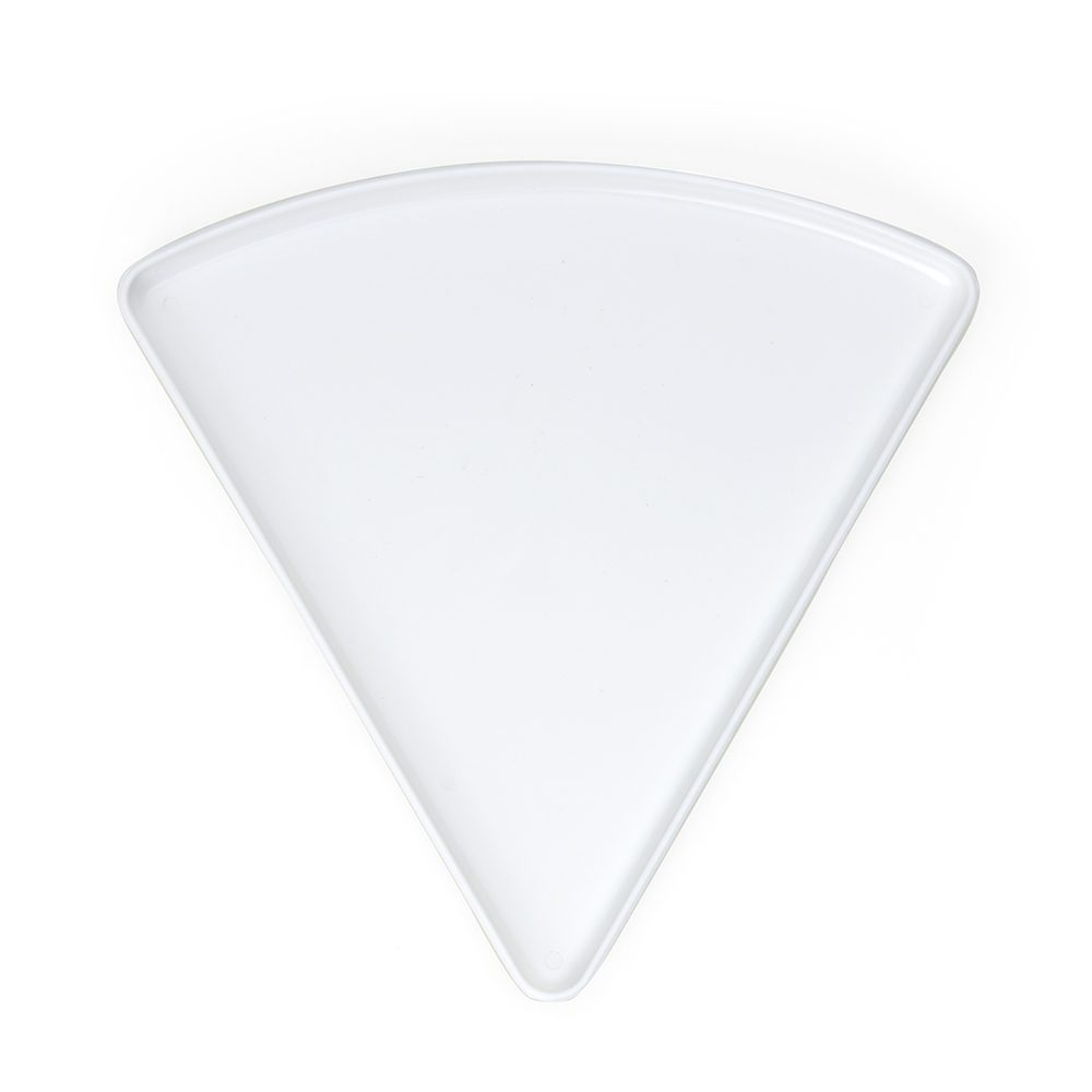 Prato plástico em formato de pizza. Feito no tamanho e formato ideal para se comer uma fatia de pizza.