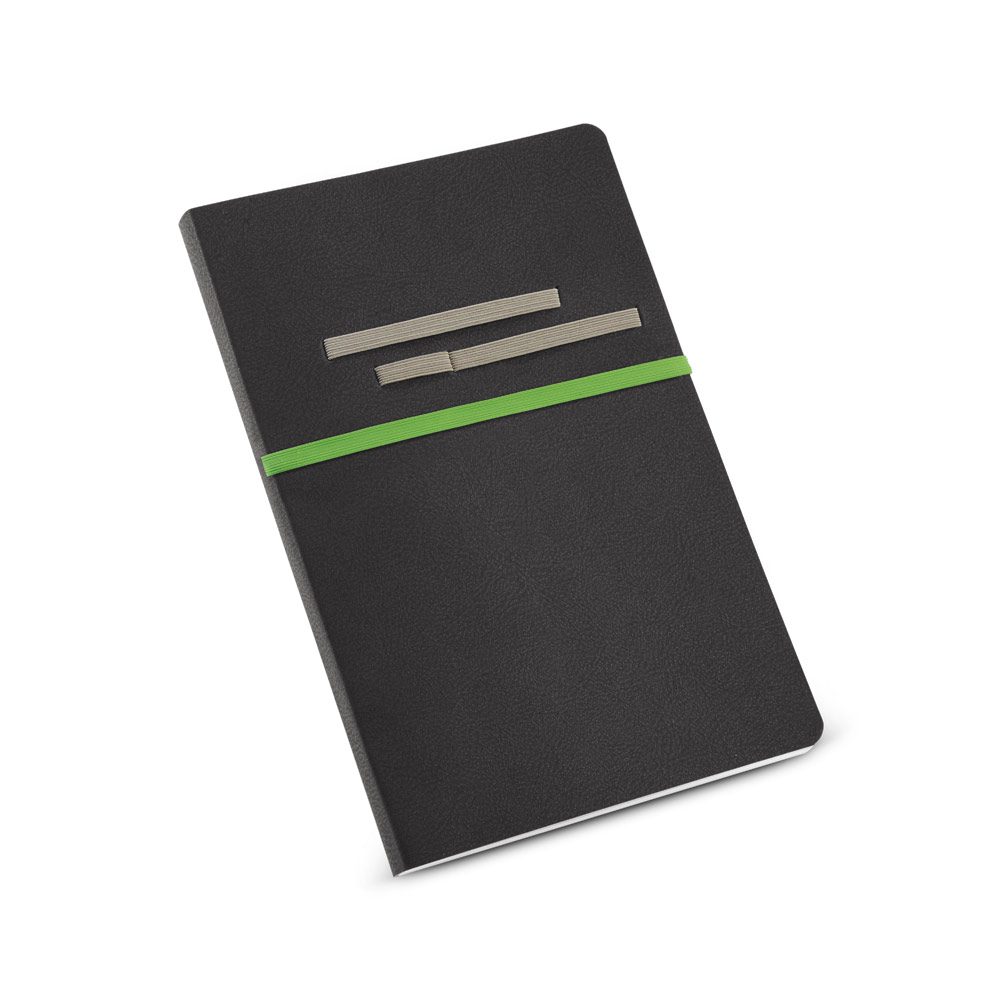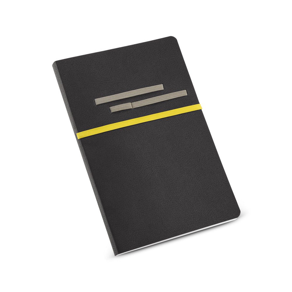 Caderno A5 em c. sintético com 96 folhas não pautadas. Contém suporte para esferográfica (não inclusa). Fornecido em embalagem de non-woven. 140 x 210 mm | Bolsa: 185 x 240 mm