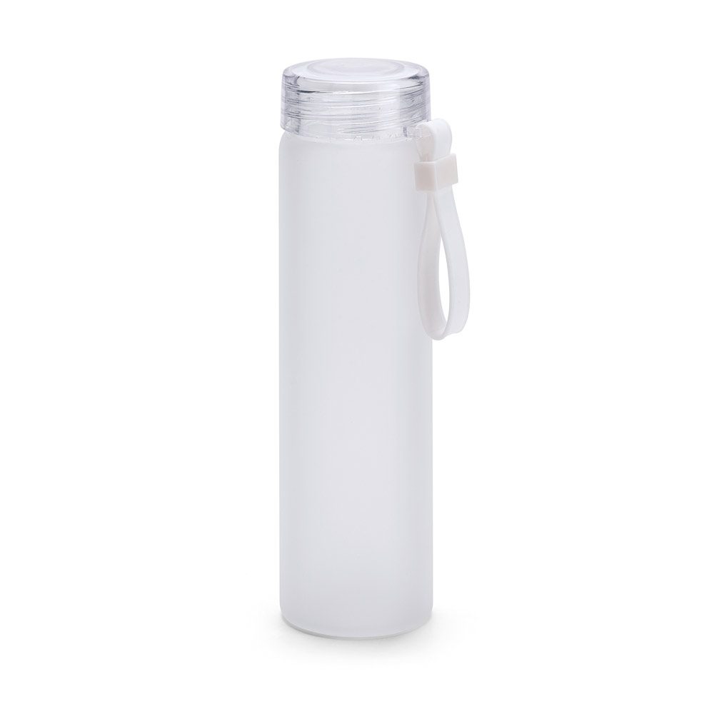 Squeeze em vidro borossilicato com tampa em PP e uma pega em silicone. Capacidade até 470 ml. Food grade. Fornecida em caixa. ø60 x 210 mm